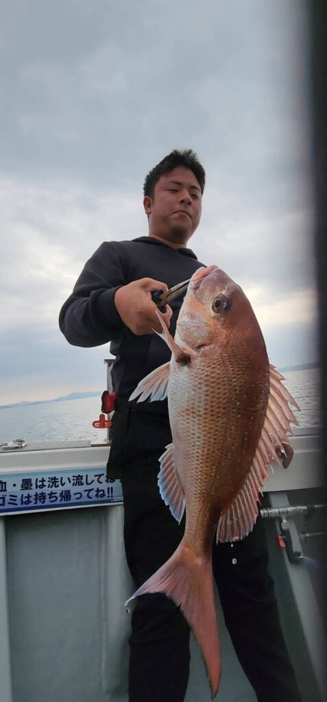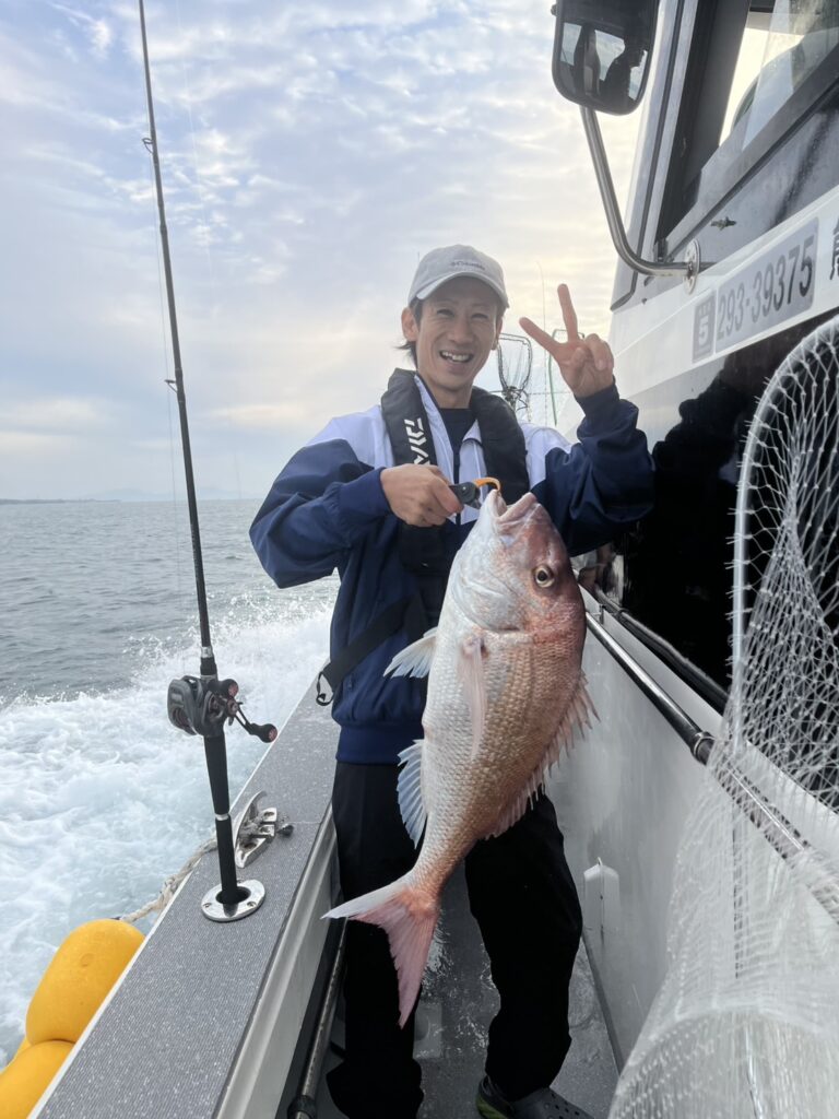 タイ釣りに行ってきました🎣本日は、西から東へと大移動、到着した頃には時合は過ぎていた模様、、、、。しかし、何とか皆様、お土産確保されました😮‍💨でも!!!釣り2回目のお客様、朝の早い段階に、2回目にして60UP😻ナイスでした👏