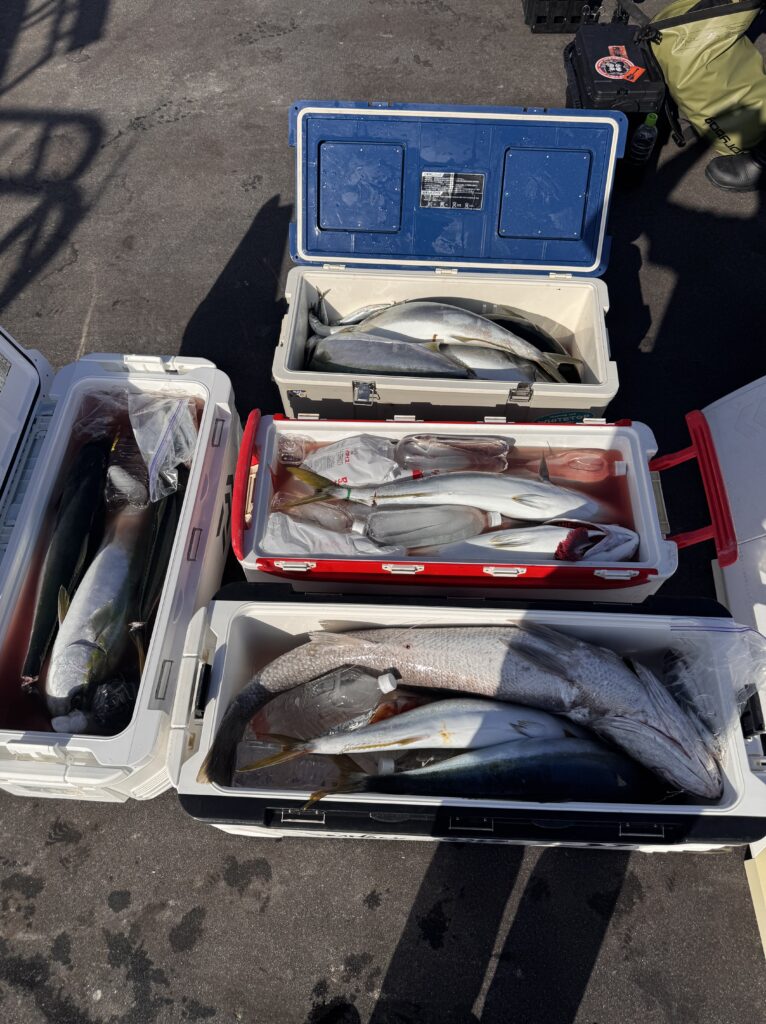 落とし込みでの出船でした🎣前半、ベイトがいなくて苦戦しましたが、ポイント移動後、確変突入😍クーラーいっぱいの方も多々いらっしゃいました✌️