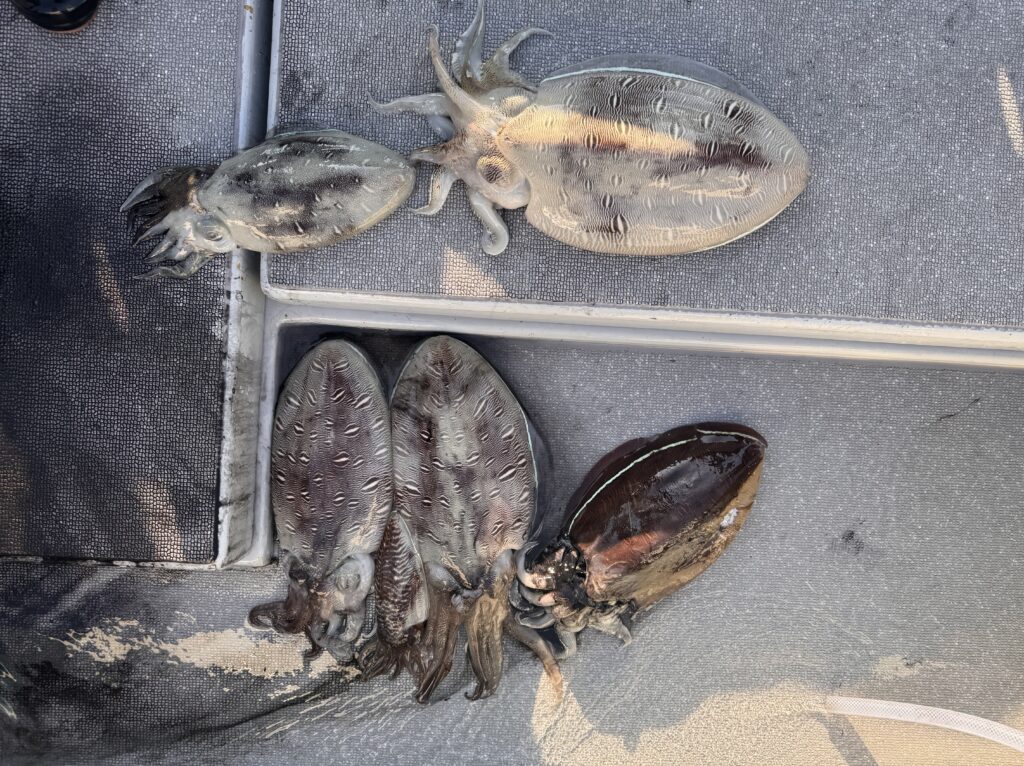 本日は、SLJのご予約で、福岡からお越しくださいました☺️どこそこ回るも青物の気配無し😭何とかお土産を持って帰って頂きたく、イカのポイントへ😅でも、皆さんお上手👏特に女性!でかモンゴ、釣ります、ばらします😂何とか皆様、お土産確保して帰って頂きました😍本日は、勝手に釣りもの変更してすみません🙇♂️又、お待ちしております🥹