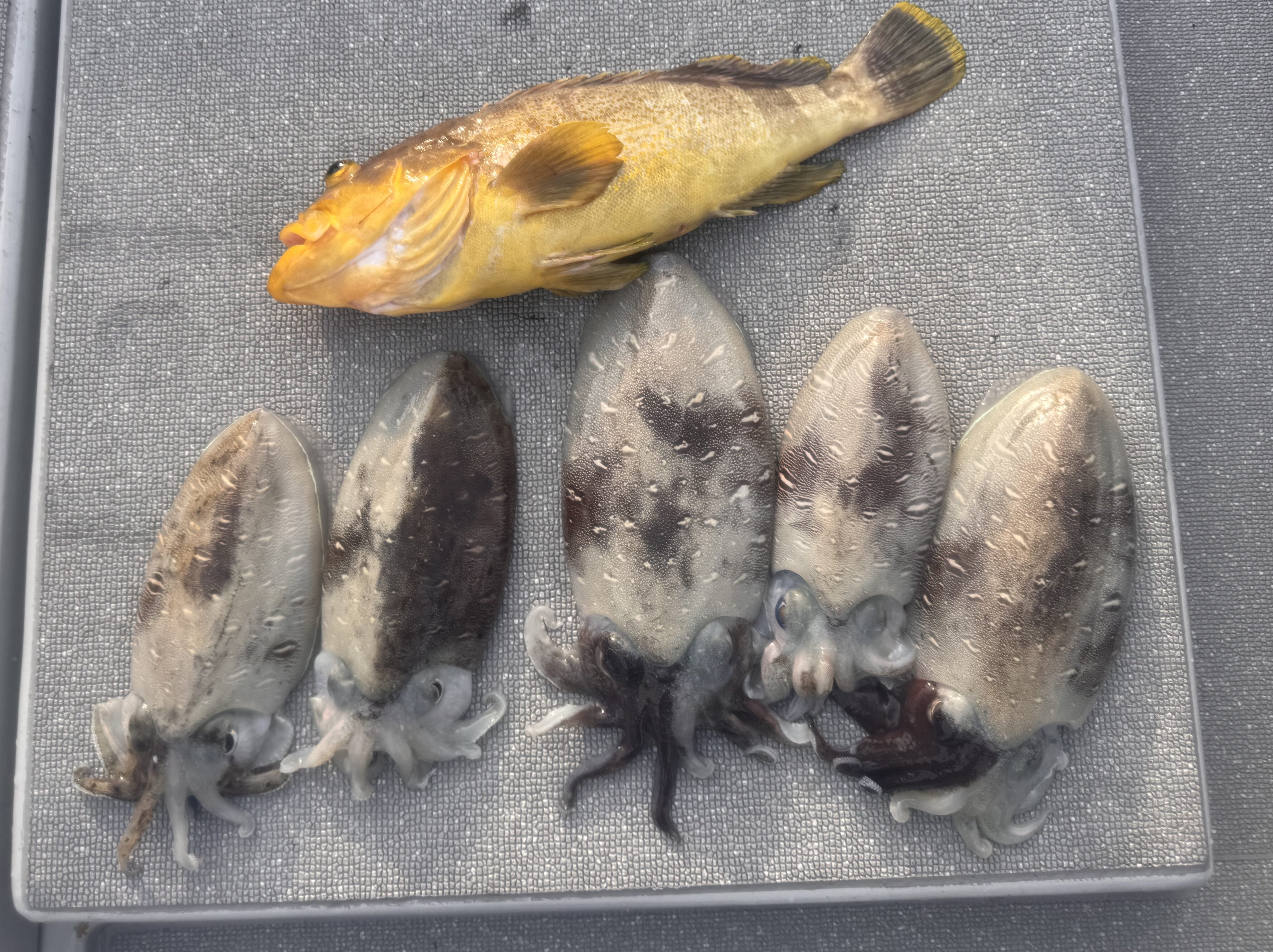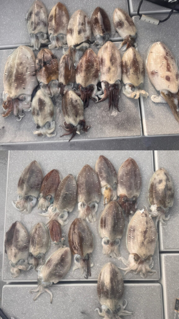 モンゴイカ狙いで出船しました🦑予想に反しての波😭皆様、船酔いしながら頑張りました👏波がなければもう少し釣果は伸びたと思いますが、十分なほどのお土産は皆様確保されていました😍