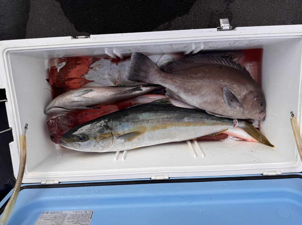 前半苦戦、というよりも11時半まで全く釣れない😭潮待ち?かと、、、狙い通り、下潮になりラッシュ、しかし上がらない魚多々あり、仕掛けを太くすれば餌がつかな、小さくすれば魚が上がらない💦どっちをとるかですね😅ヒラス、ネリゴ、ハマチ、タイ、ハガツオ、カツオ、他、釣れました✨皆さま、お疲れ様でした🙇